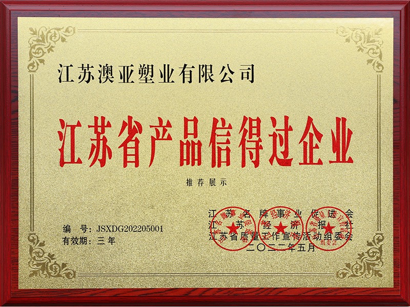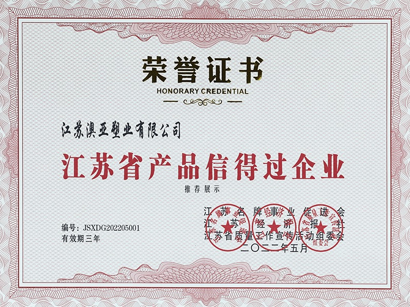 江蘇省產(chǎn)品信得過(guò)企業(yè)(證書)