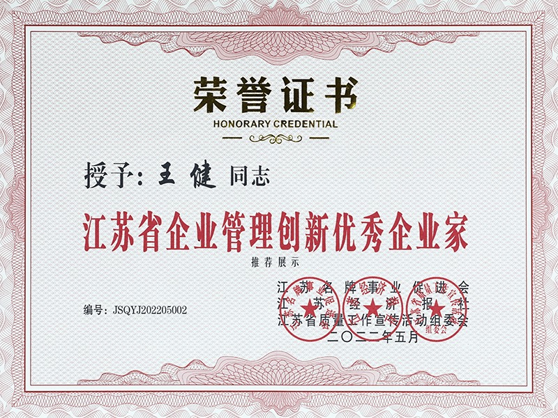 江蘇省優(yōu)秀企業(yè)家(證書)
