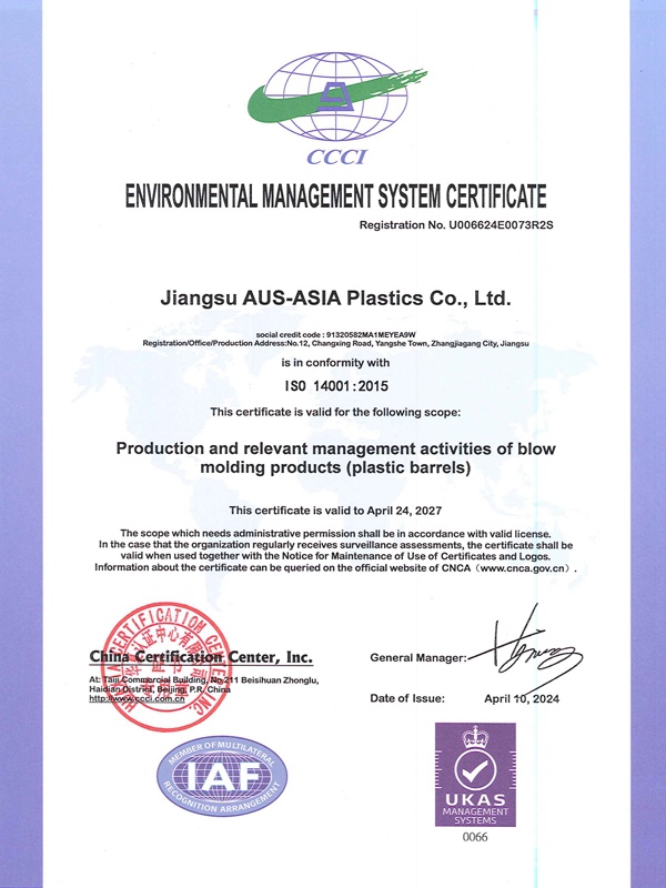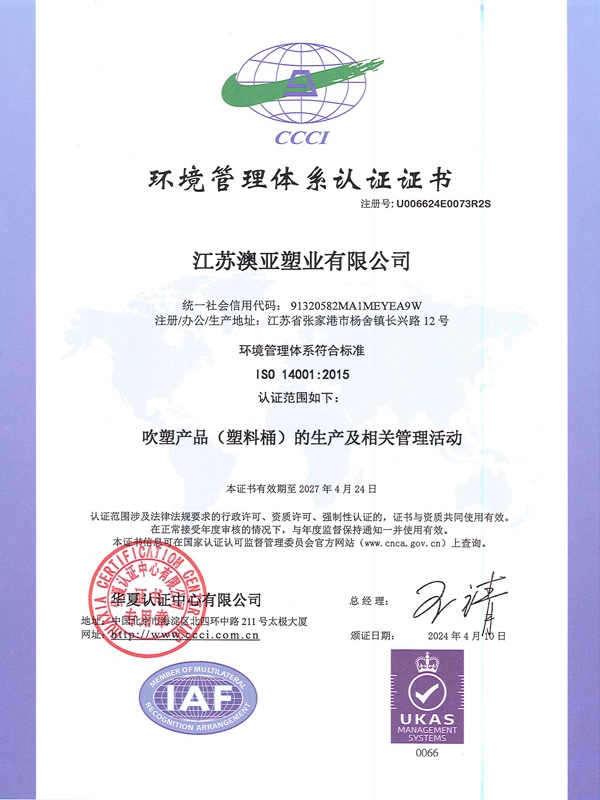 環(huán)境管理體系認(rèn)證證書