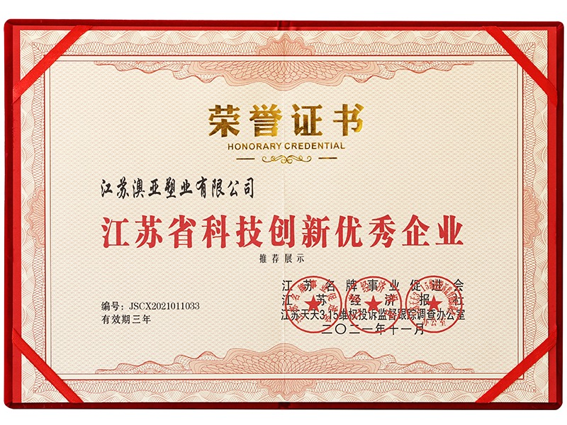 江蘇省科技創(chuàng)新優(yōu)秀企業(yè)(證書)