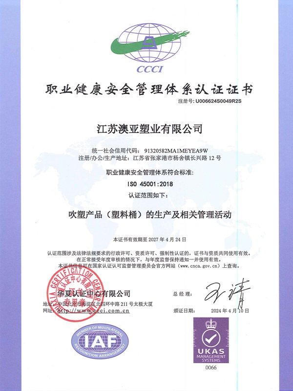職業(yè)健康安全管理體系認(rèn)證證書